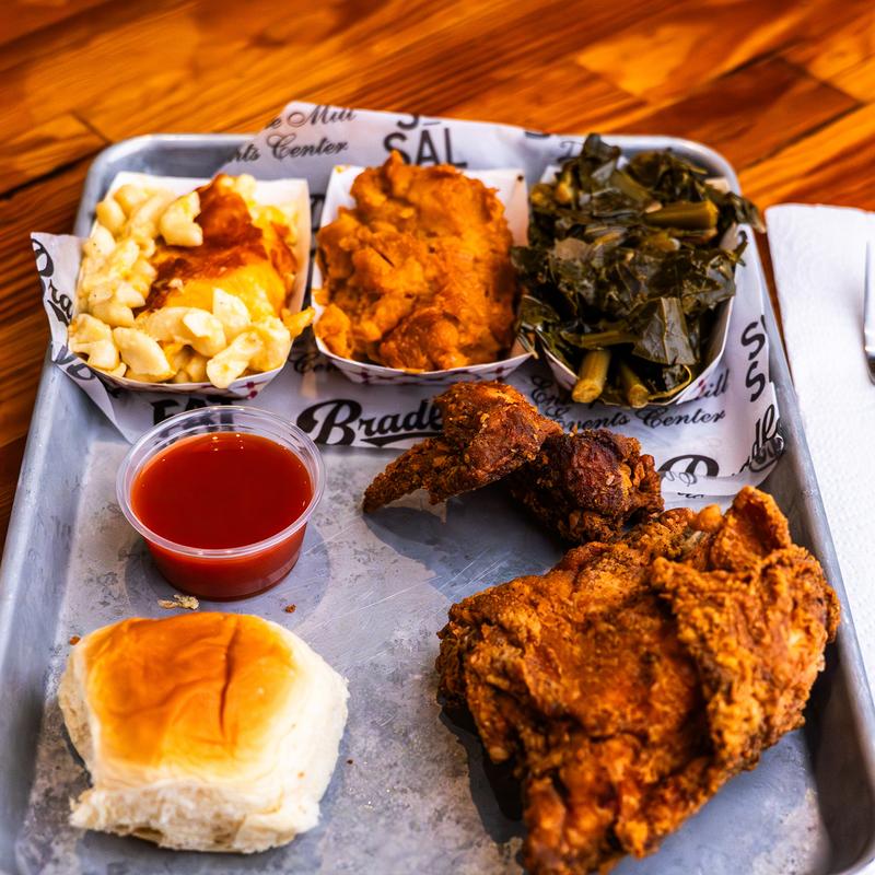 Choose 1 meat and 3 sides with a roll or cornbread.