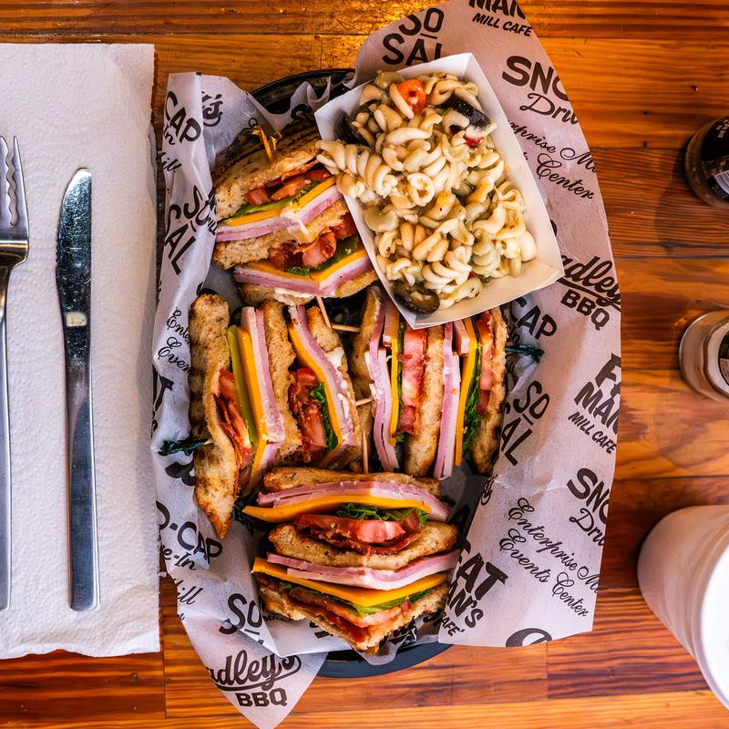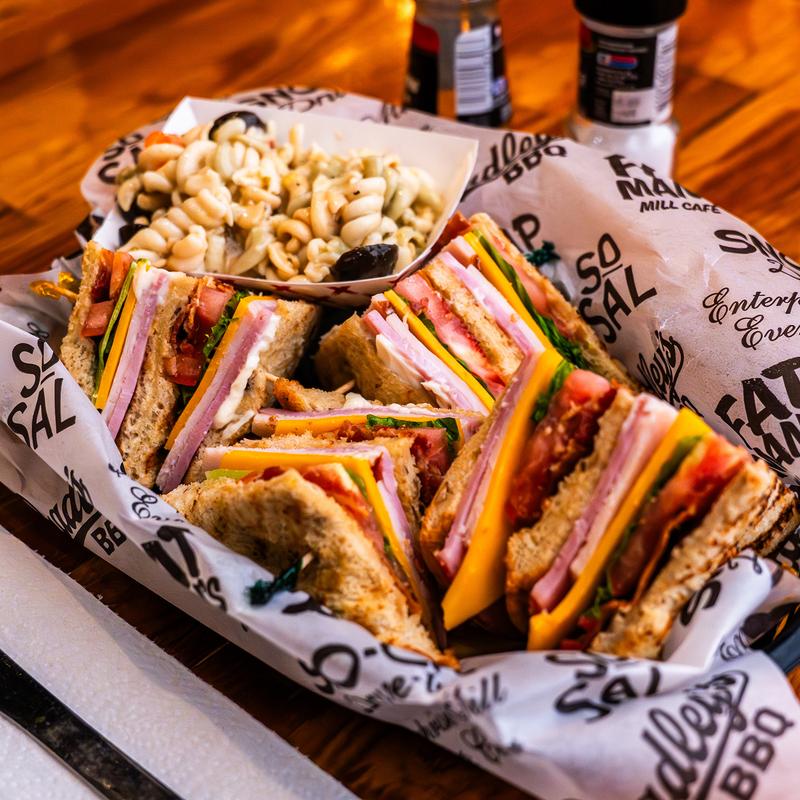 Pick three: Turkey | Ham | Roast Beef | Corned Beef Chicken Salad | Grilled Cheese Pimento Cheese | Vegetarian Wrap • Served with: Pick two: Pasta Salad | Potato Salad | Cole Slaw | Chips